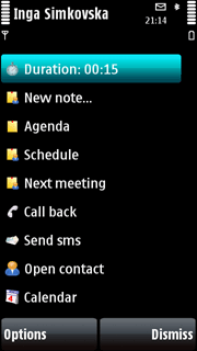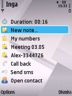 Allows to take notes during a call. Notes can be tagged to the person you are speaking with to be easily accessed when you have a conversation with this contact or global ones to be accessible during any call.
