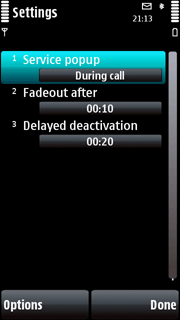During call - the service window will pop up automatically as soon as a call is established. Also you still can use MENU key to pop it up manually.