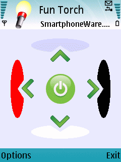 How does it work:After the application starts it displays cursor arrows and start (turn on) button on the main screen. Pushing arrows allows to change the torch color, the middle (start) button allows to start torch. On touchless devices keypad arrows are equal to the screen ones and joystick click is similar to start button. In torch mode the display brightness is set to maximum. To exit the torch mode just press any key or click the screen. |