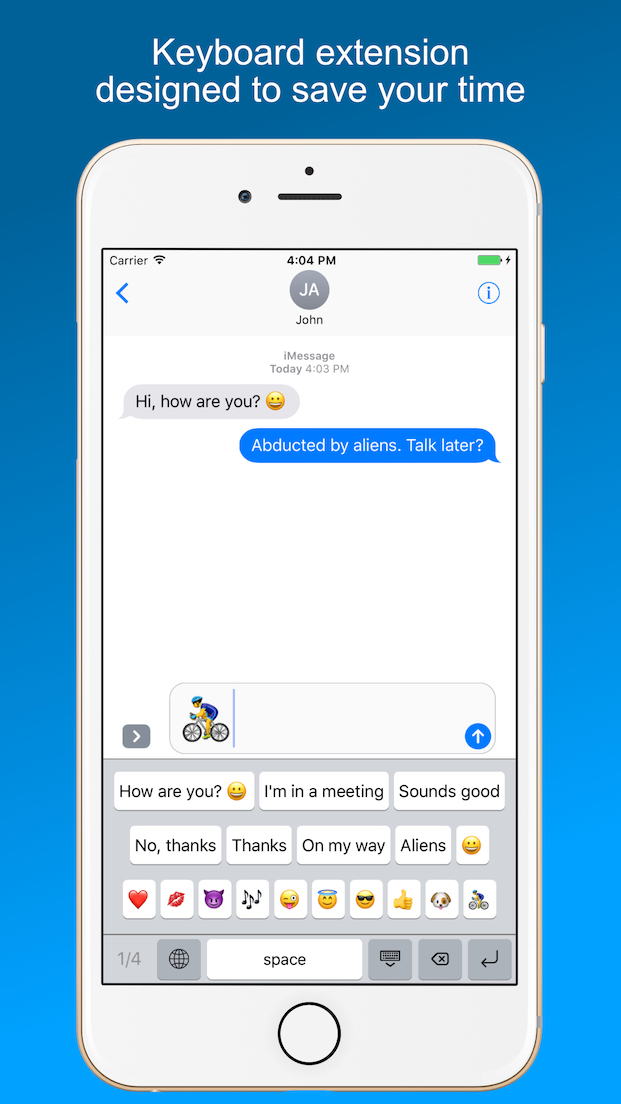 SnippetKeys is a utility keyboard and it doesn’t replace the standard one. You can use the standard keyboard for normal typing and quickly swap to SnippetKeys to insert canned phrases with one tap.