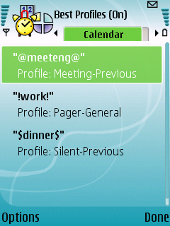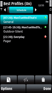 Best Profiles for Symbian^3 allows automatic profiles switching according to your schedule, calendar or GSM cell location.